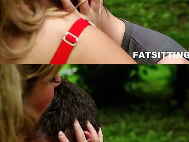 Fat lady facesitting outdoors