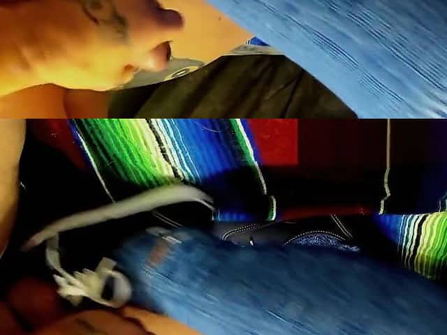 Cumshot on Keds Sneakers and Blue Knee High Socks