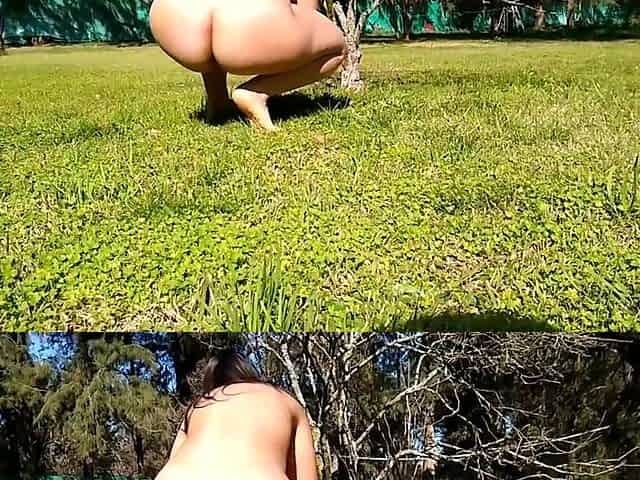Peeing outdoors in hose with exposed feet