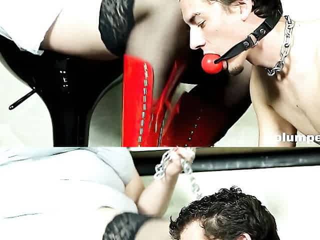 Femdom fetish bitch fuck and cumshot action with victim
