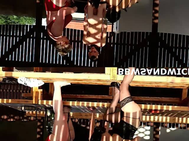 Outdoor threesome with 2 BBWs