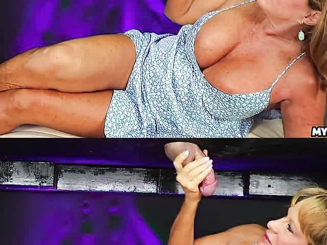 MILF with big ass and big belly rubs pussy and jerks off my dick