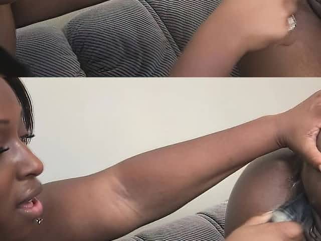 Two chunky black lesbians get their toys working on their fat twats