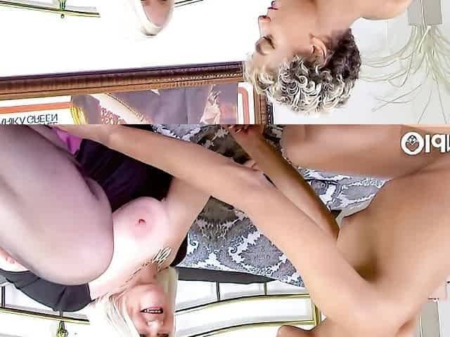 Brunette babe 69 lesbian fucks tattooed blonde