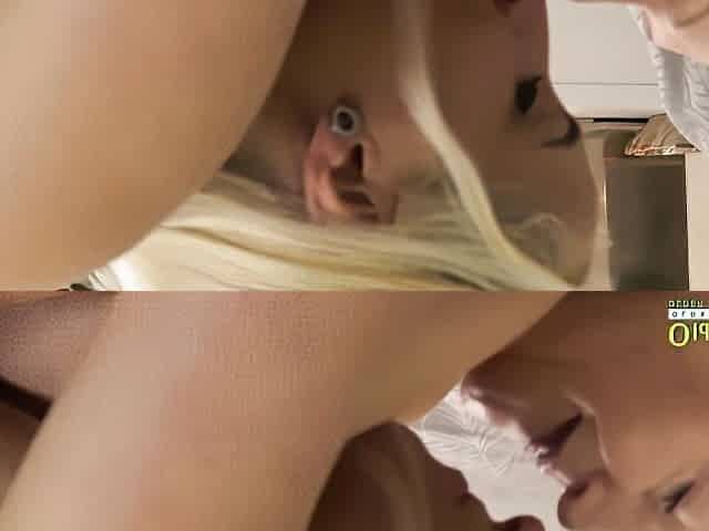 Blonde teen sucks her dildo then drives it up her twat hardcore