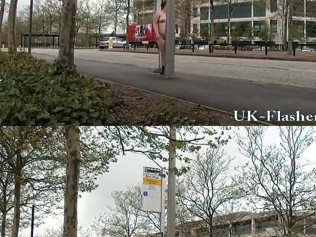 public exhibitionist naked in public and flashing outstide broad daylight