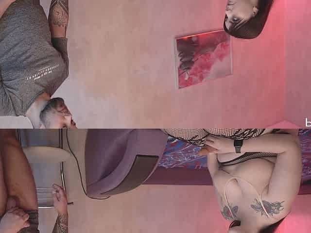 Prostate Massage Blowjob and Handsfree Pegging Cum Eruption as Babe Fucks His Ass