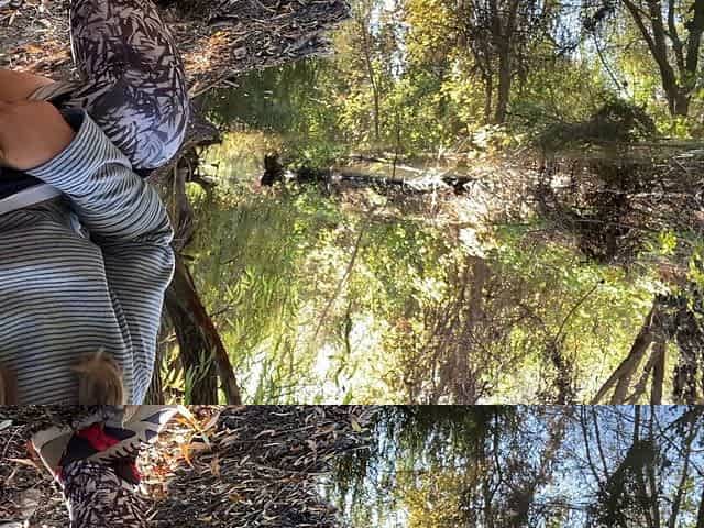MILF dressed in leggings pissing in the river