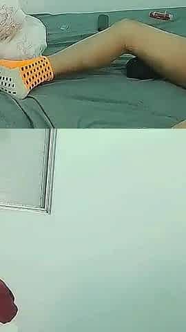 Playing with Her Ass and Running the Yellow Thread While Standing on the Mattress