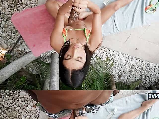 Beautiful brunette Niana Dorev is enjoying jumping on a big cock