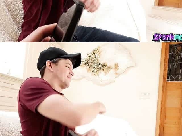 A teenager broke the sofa jumping on a obese shlong