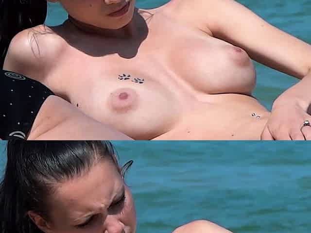 Nudist lie down sunbathing naked with their curvy asses