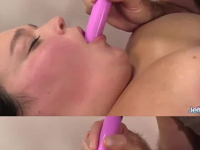 Big tits lesbian BBWs gape their pussies with big ravel