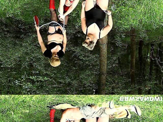 2 BBWs Jana and Kristy tirture a guy outdoors