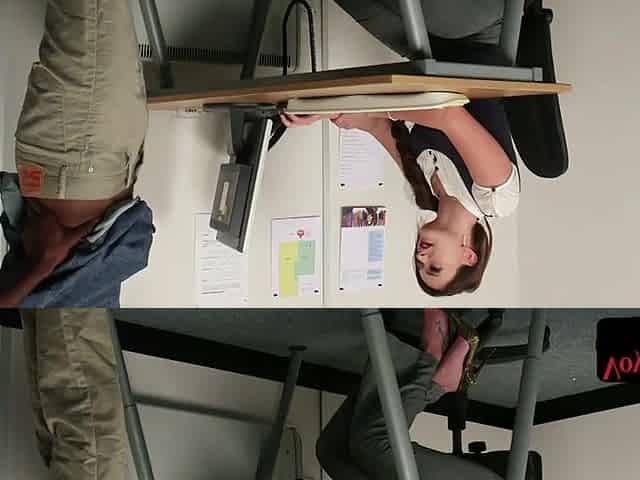 Office MILF seducing black colleague during wanking