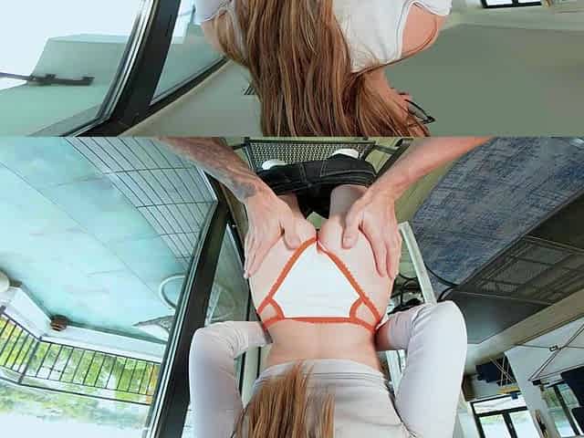 Glamorous student is permeated with dildos with the view from underneath