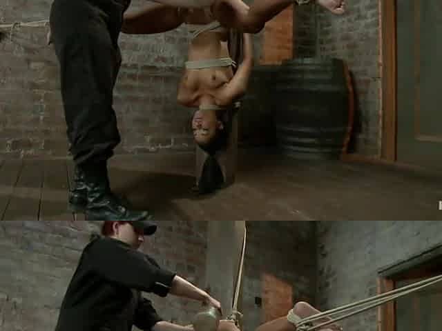 Tiny flexible brunette suffers a Category 5 suspension while being made to cum over and over!