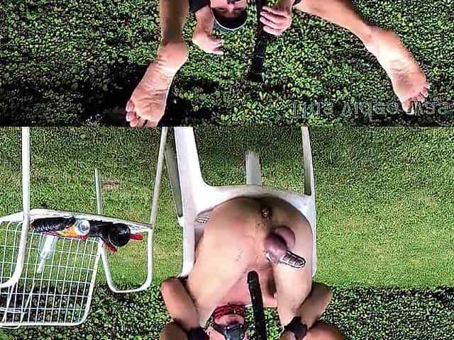 in nature's garb pathetic white thrall during outdoor party, got enema, had to show what fits in homo butt, CMNM