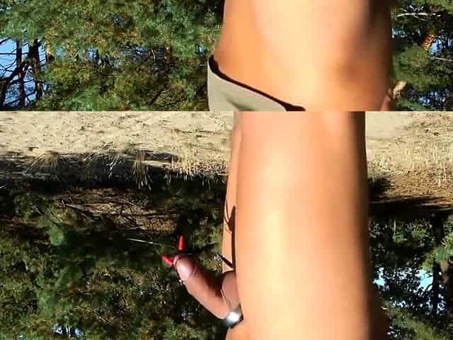 Bettina fucks over her slave by torturing his cock while he's tied up