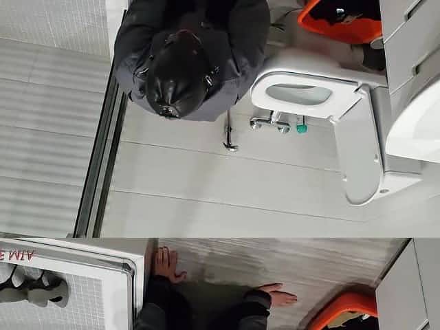 Cuffed sex-slave is washing floor with her mouth