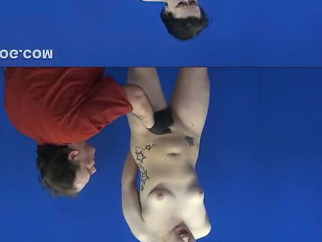 Mouth gagged tattood lezdom sub in pain