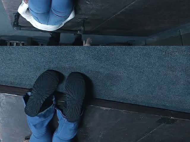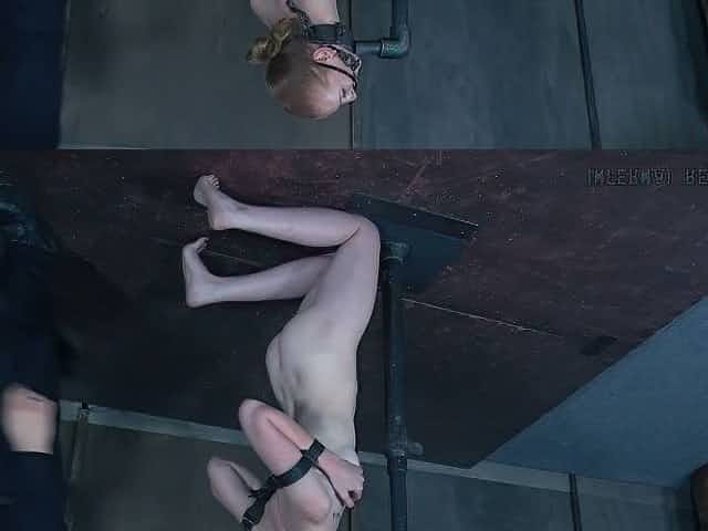 BDSM girl hung upside down in dungeon