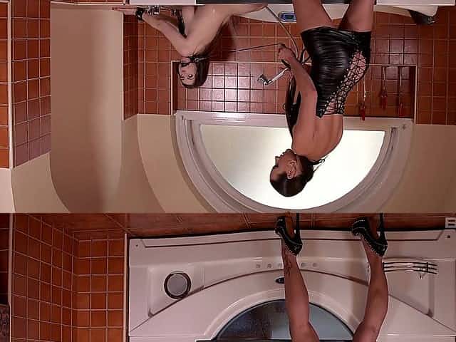 Shiny latex catsuit on spanking mistress