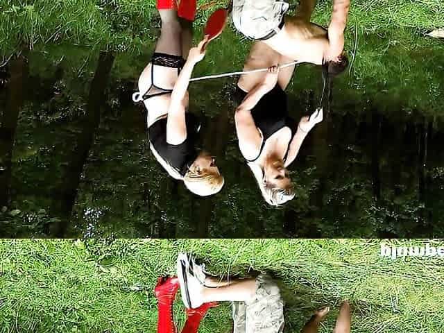 Dirty outdoors BDSM scene with slave girls Lucky and Lucie Lee