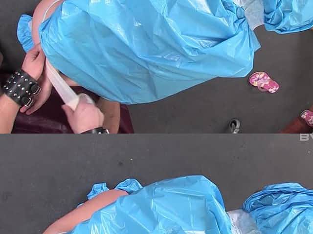 Fetish fuck for a blonde teen who was agreeable to being wrapped in plastic