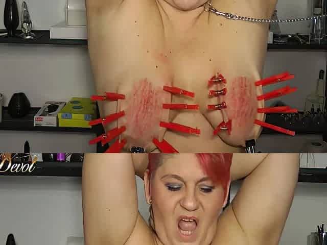 Bizarre Teat Punishment with Metal Brush and Tabasco for Resigned Painslut