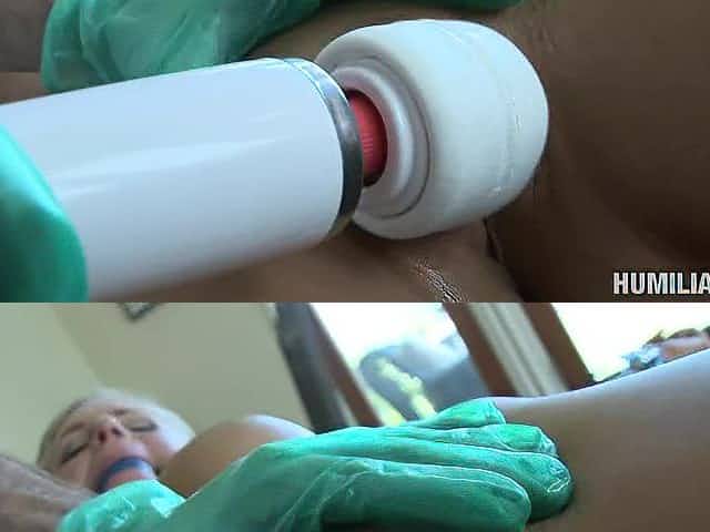 Blonde submissive slave girl gets her pussy pounded with machines