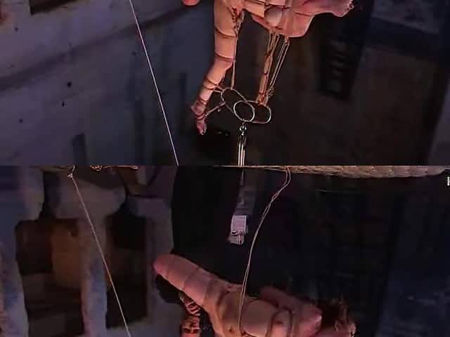 Raunchy brunette slut enjoys being suspended in the air with ropes