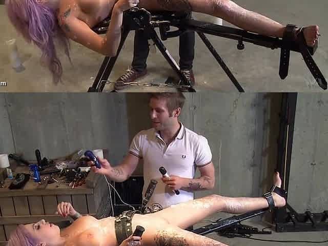 Hot Raven Rockette gets her tits and pussy electrified