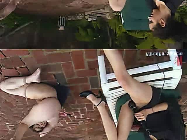 Nice ass slave pulling cart outdoor while yelling in BDSM