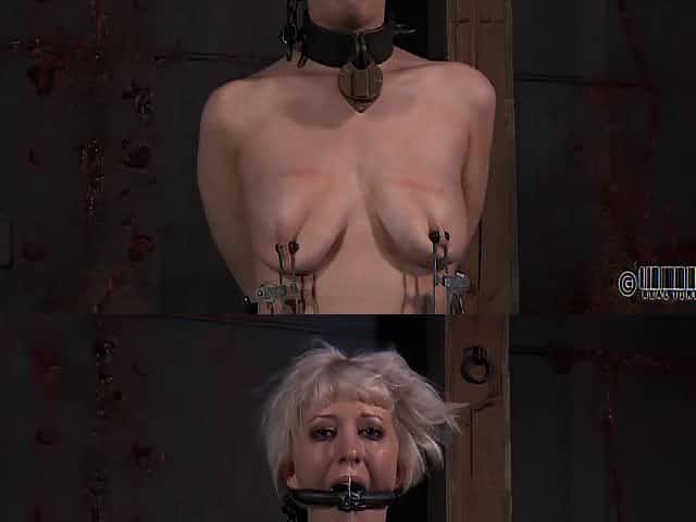 Chained blonde with massive tits craves to feel sweet pain