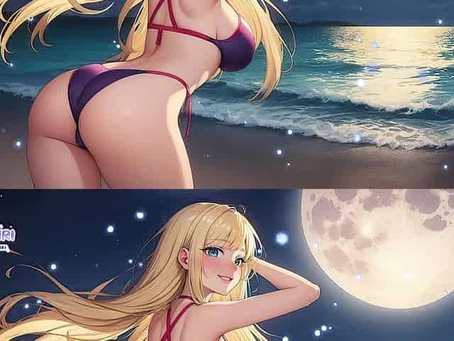 gorgeous woman relax on beach (Ai animation)