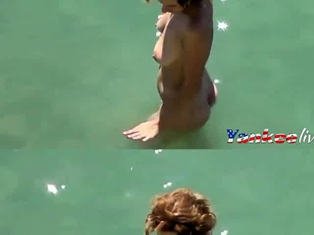 Sweet babe Sky Pierce takes a dip in the sea without her bikini