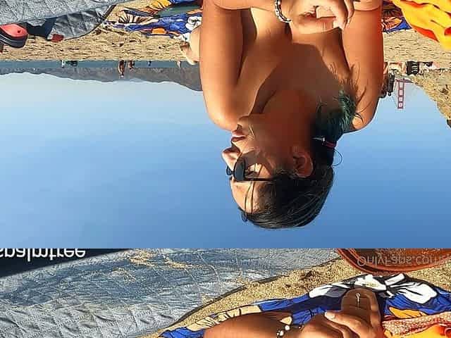Fully exposed beauty is relaxing at the public beach