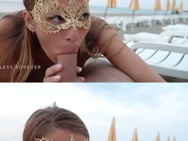 Topless Bitch From a Topless Beach Gets Her Filthy Mouth Filled with Cum