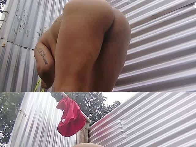 Latina woman with a generous ass recorded on camera in a beach cabin