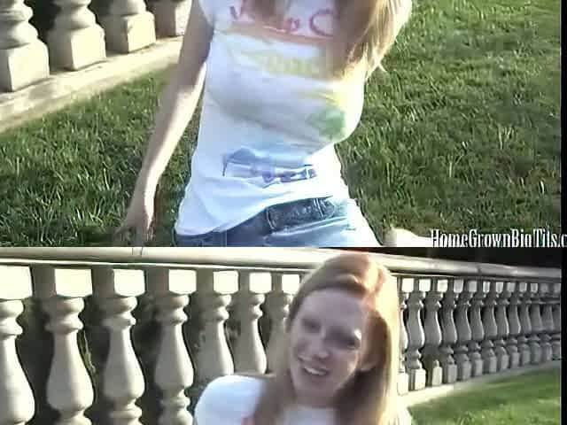 Massive natural tits on a beach