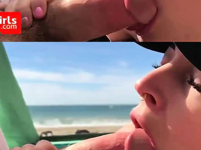 Beach blowjob
