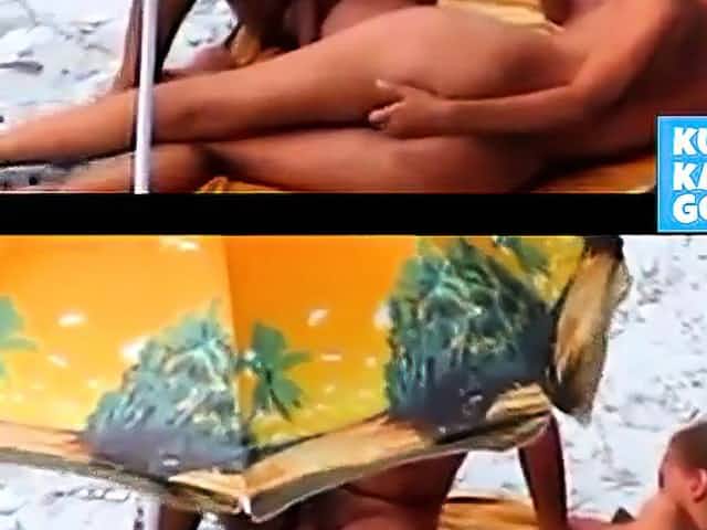 Very hot babes beach sex and cum swap