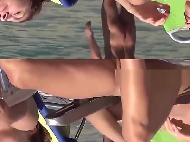 Topless amateur cougars - spycam beach close-up