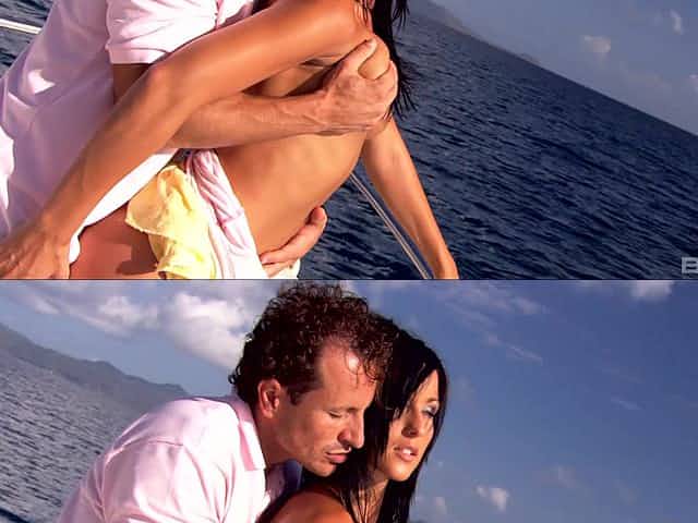 Lovemaking on the beach with a big breasted brunette babe
