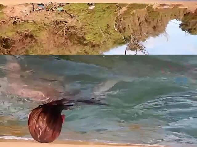 Girl playing w. stranger at lake 2