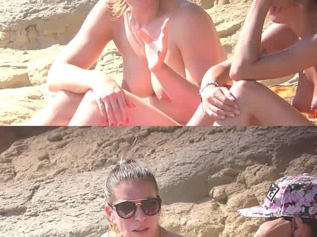 Nude Beach Girls Casually Enjoys A Naked In Public - Sunny Day