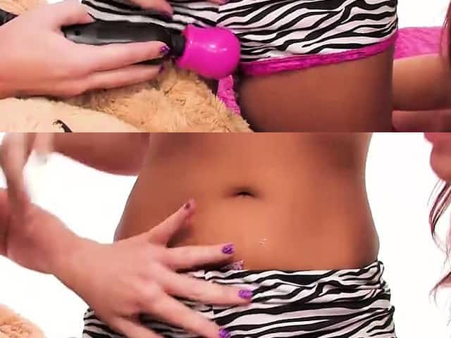 Horny girl playing with toy bear