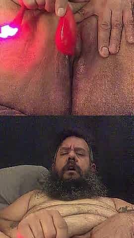FTM Bear Chub cums hard with a sex toy