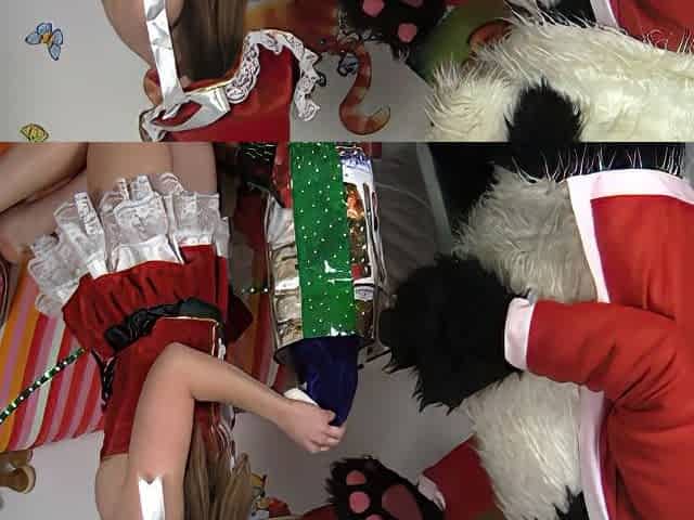 Hot golden-haired cutie seduces Panda bear